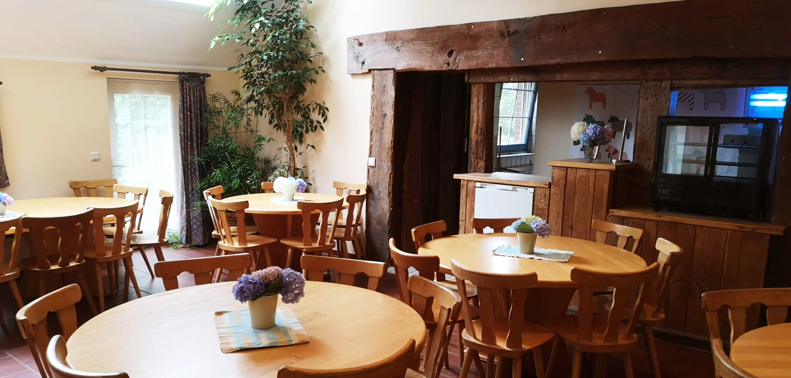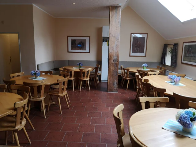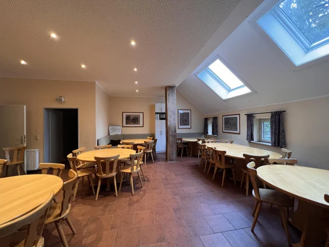 Unser heller, lichtdurchfluteter Aufenthaltsraum ist Speisesaal und Spielzimmer in einem. Vereine und Gruppen nutzen ihn vielfach für Vorträge oder Chorübungen. Gerne beachten wir bei Ihrer Buchung, wer mit wem ein Zimmer teilen möchte. Wer welches Zimmer erhält, liegt allerdings in unseren Händen.