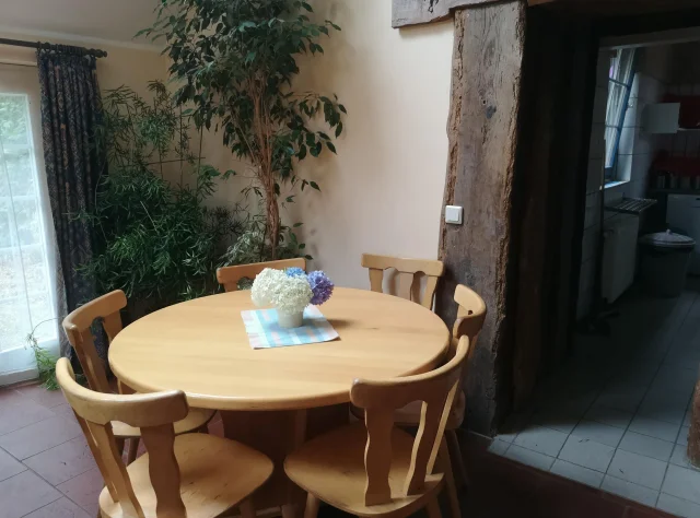 In der Wochenmitte kommt ein professionelles Reinigungsteam, das die Räume aufräumt und säubert. Ein, zwei Handgriffe von jedem Gast machen es unseren "Heinzelmännchen" allerdings einfacher: Jeder macht sein Bett selbst und achtet darauf, dass er keinen Dreck (Stiefelstalldreckmist) mit hineinträgt. Entsprechend bleiben die Reitstiefel und das eventuell mitgebrachte eigene Pferdeputzzeug in der Stiefelkammer, die quasi neben dem Übergang vom Hof zum Gästehaus liegt.