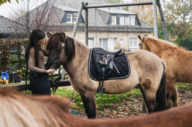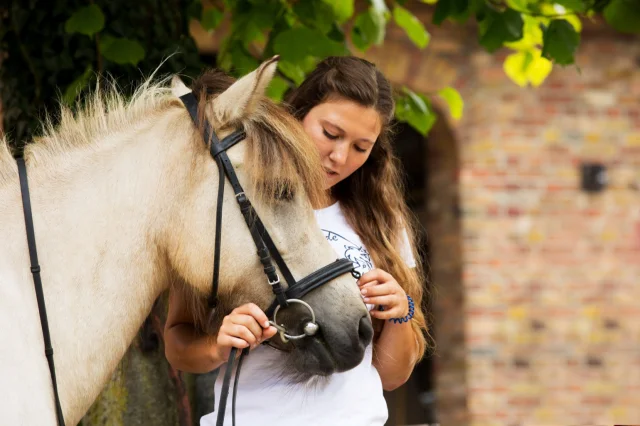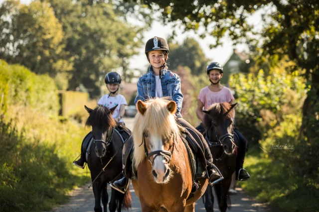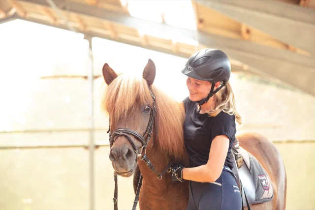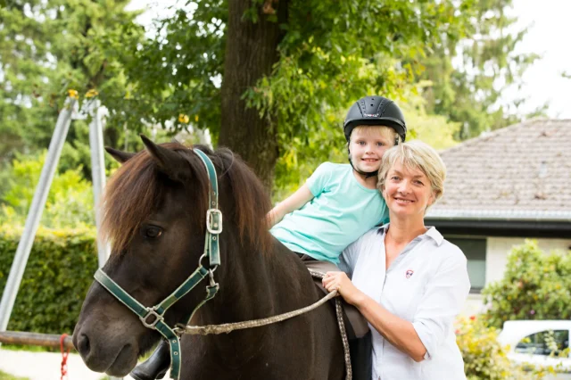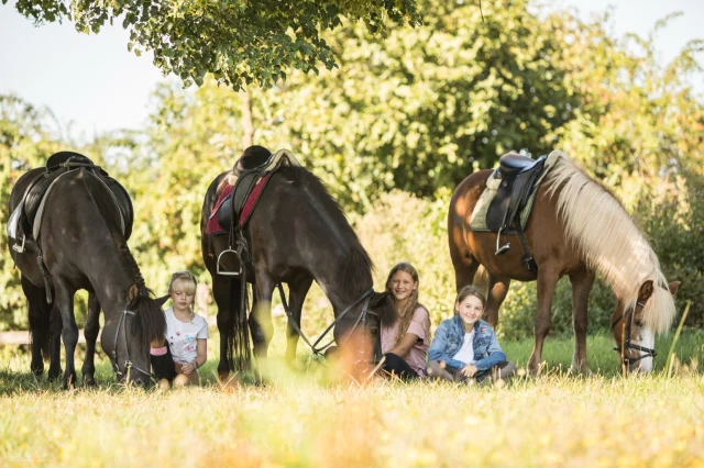 Gerne stellen wir Ihren Schüler und Schülerinnen unsere Islandpferde vor. In Gruppen von bis zu sechs Personen lernen die Kinder den verantwortungsvollen Umgang mit dem "Partner Pferd". Zunächst wird das Pferd vorbereitet und anschließend an der Longe das erste Mal die luftige Höhe des Pferderückens genossen. Krönung dieses 150-Minuten-Kurses ist der erste – geführte – Ritt, z. B. durch unsere 200 Meter lange Ovalbahn oder auch das fußläufig erreichbare Gelände.