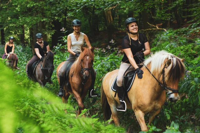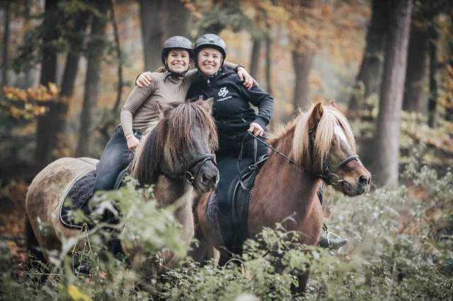 Wir starten direkt am Hof und damit direkt am Naturpark Hohe Mark. Nach wenigen Metern über Feldwege sind wir direkt im Wald. Hier gibt es unendlich viele Reitwege, traumhafte Galoppstrecken und verschlungene Pfade. Eine unserer Lieblingsstrecken führt zu einem idyllischen Waldhof. Hierfür geht es erst einmal an einer Lichtung vorbei. Dann halten wir uns links, damit wir auf keinen Fall die ideale Strecke für einen sportlichen Gallopp verpassen. Danach gönnen wir uns und und unseren Pferden eine kleine Verschnaufpause – zunächst im Schritt und anschließend bei einer Apfelschorle im Waldhof. Der Weg zurück ist natürlich ein ganz anderer als der auf dem wir hergekommen sind. So glaubt jeder gerne, dass man sich auf den Hausstrecken des Reiterhofs Budde durchaus mal verreiten kann…