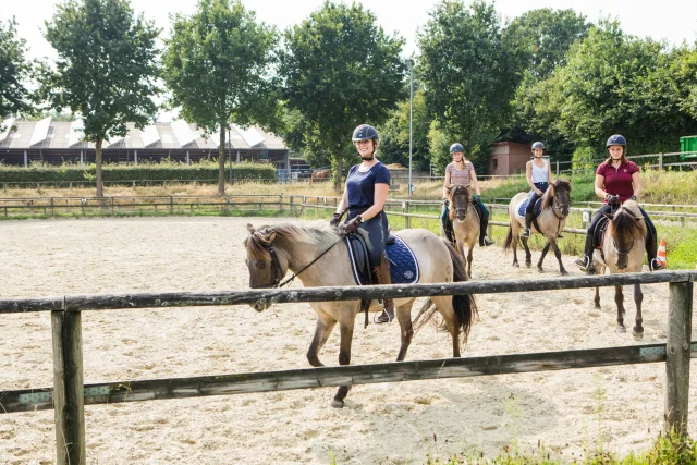Ganz zu Anfang setzen wir die Teams zusammen. Je ein Reiter und ein Pferd bilden ein Team. Die beiden bleiben dann die ganze Woche zusammen. Zusammen haben sie zwei Mal am Tag Reitunterricht, zusammen arbeiten sie am Erfolg, zusammen gehen sie durch dick und dünn! Ferner werden die Gäste in Gruppen zwischen 5 und 7 Personen eingeteilt die sich an den reiterlichen Fähigkeiten, dem Alter und natürlich auch an Freundschaften orientieren.